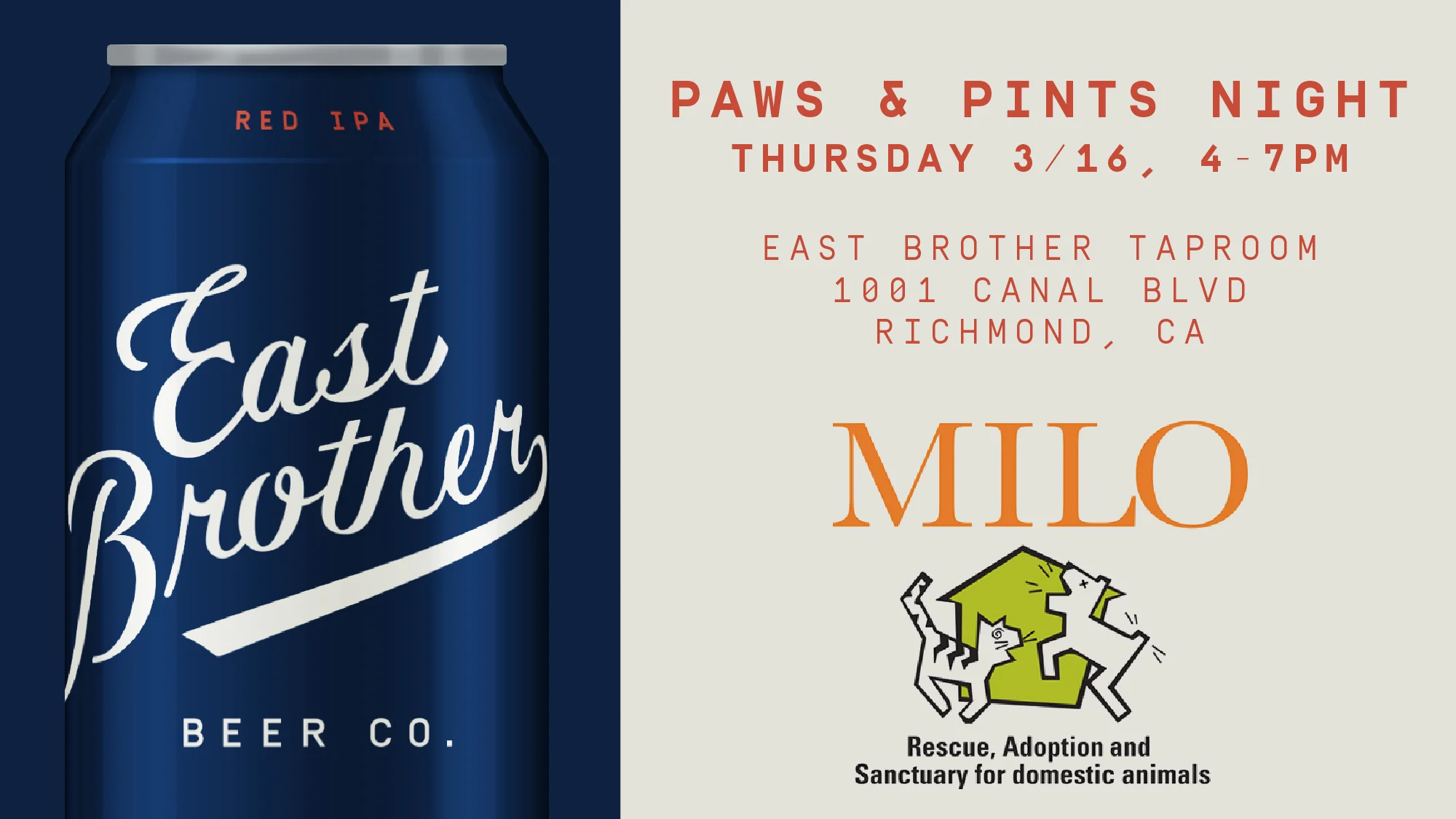 Worried about getting your drink on during a Thursday night before St. Paddy's? For every pint we sell at East Brother Beer Company, we will be donating a dollar to the Milo Foundation - so now you're drinking for a good cause! Come out play some games, win some prizes and love on some heart melting playmates!