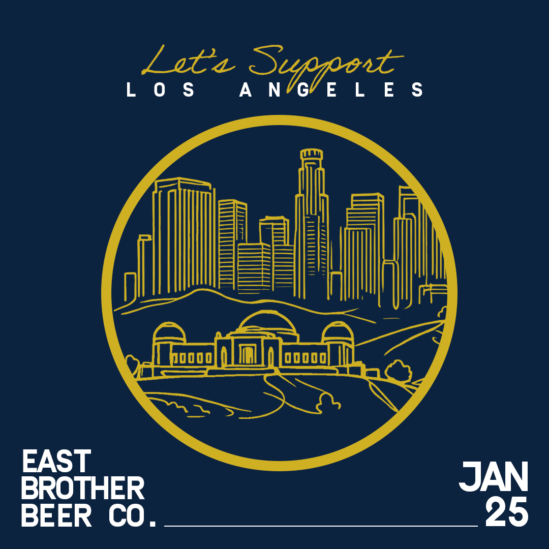 Join East Brother Beer Co. on Saturday, January 25th, as we come together to support those impacted by the devastating Los Angeles wildfires. On this day, we’re proud to donate a percentage of all proceeds from every pint, six-pack, and crowler to aid the victims and help rebuild lives.